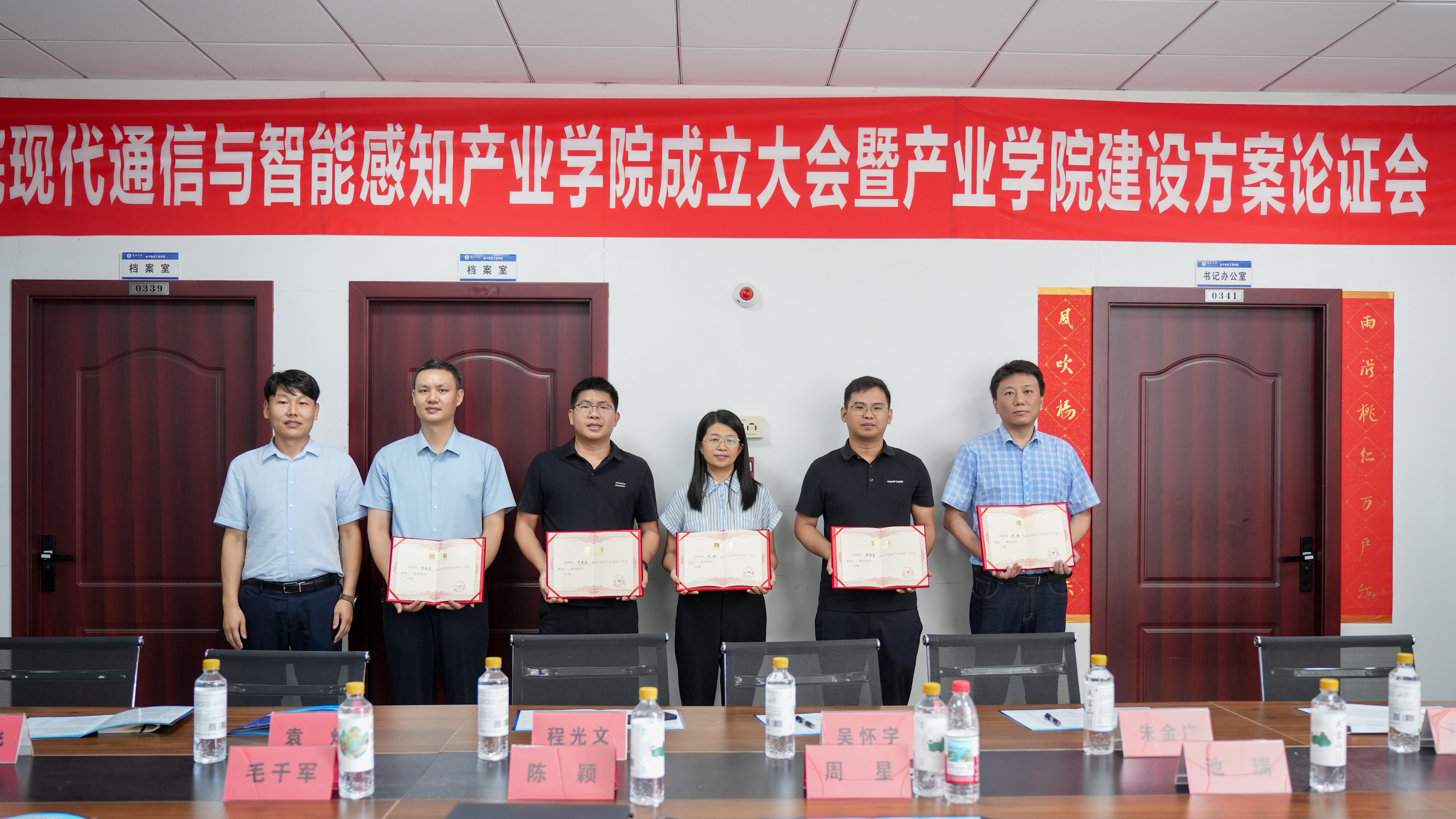 会上,汉口学院党委副书记朱金广教授为陈颖、池瑞、刘元青、万光海、陈银豪等5位行业专家颁发“产业教授”聘书,强化“双师型”BETVLCTOR伟德在线建设。随后,在热烈的氛围中汉口学院常务副校长吴怀宇教授与共建企业代表周星总经理共同为现代通信与智能感知产业学院揭牌。
