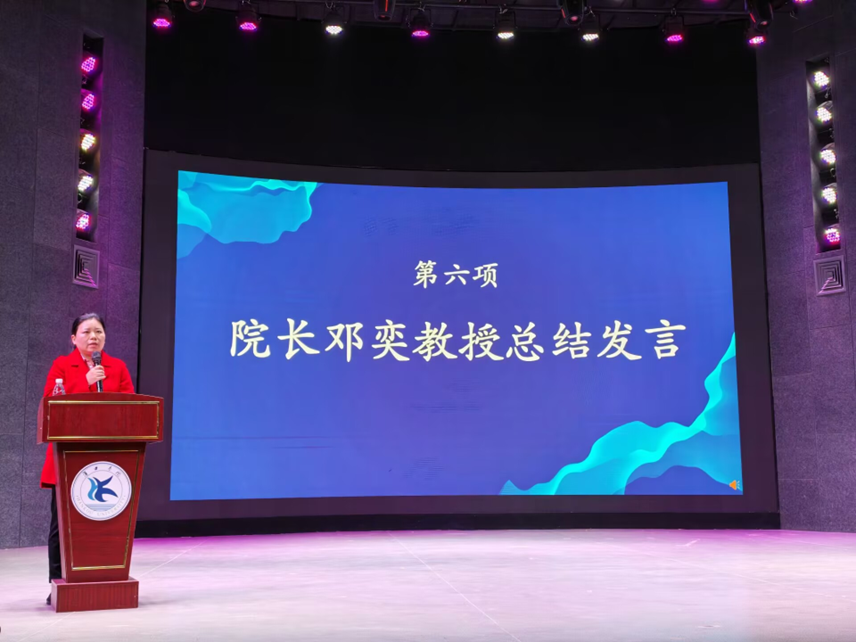 活动最后,学院院长邓奕教授作总结发言。她强调,本次活动不仅增进了新老生之间的交流互动,更让新生对学院发展和专业学习有了清晰认知,为学院人才培养工作的有序推进注入了新的活力。随后依次向全体新生介绍了学院教职工团队以及学院的办学优势,充分展现我院充满活力、实力、正气与斗志。并对全体新生提出四点希望:一是系统读书,通过系统化阅读整本书,形成个人认知体系,培养创新思维与创新潜能,提高决策质量,塑造成长型思维;二是主动思考,培养系统性逻辑性思维;三是提前规划,在大学学习和生活中不断提高实践和应用能力,从而具备参加工作的自身优势,树立升学目标,鼓励学生积极考研来提升学历;四是规律运动,每天坚持锻炼,通过运动释放压力、提升心理韧性、改善睡眠质量,能精力充沛的进行高效学习。