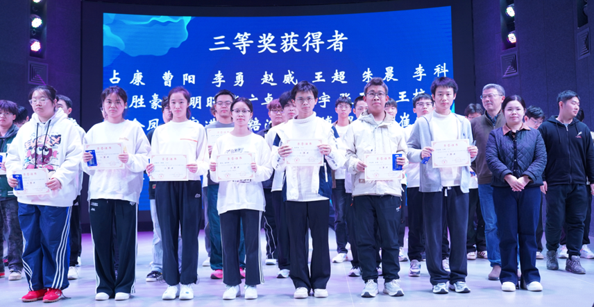 随后,举行第二届“电信杯”电子设计竞赛颁奖仪式。获奖师生依次上台领奖,现场掌声雷动,充分彰显了学院在实践教学与创新人才培养方面的丰硕成果。